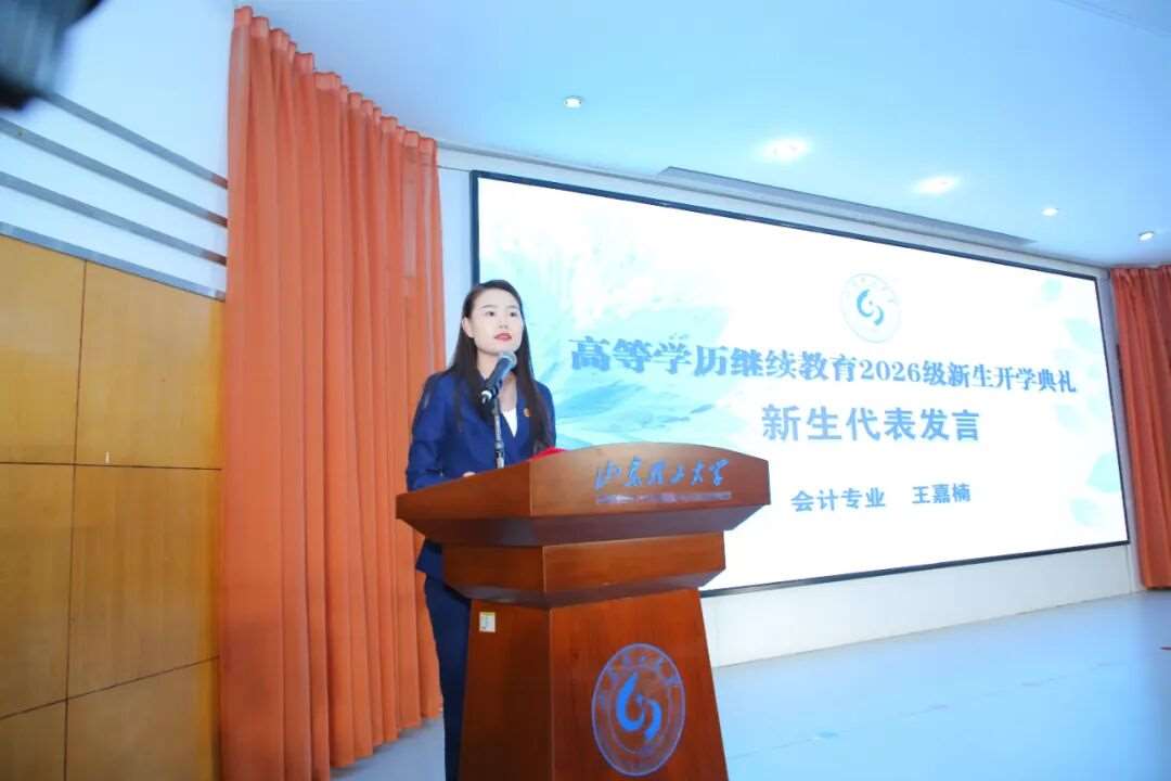 我校新生王嘉楠代表2026级全体新生上台发言。她结合自身的职业成长经历与求学初心,分享了选择山东理工大学高等学历继续教育的初衷,表达了对全新学习生涯的无限期待与向往。同时,她代表全体2026级新生郑重承诺:将严格遵守学校各项规章制度,恪守学习初心,以勤勉踏实的态度完成全部学业任务,在兼顾工作与生活的同时不断提升自我、完善自我,以优异的*回报学校与老师的悉心培养,不负韶华、不负时代。