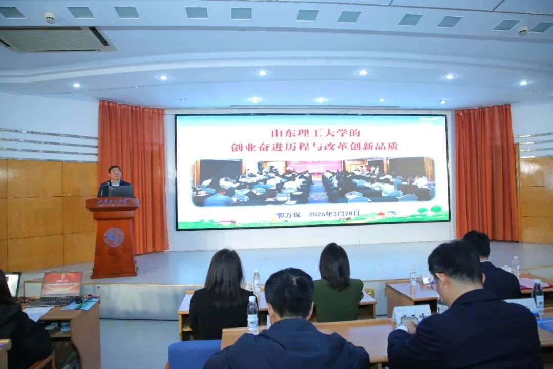 随后,一堂浸润初心的校史课正式开讲!山东理工大学图书馆党委书记、图书馆(档案馆)馆长郭万保,以“山东理工大学的创业奋进历程与改革创新品质”为题,为新生带来了一场干货满满的校史专题课。从丰富的历史图文到鲜活的发展故事,郭万保带领同学们穿越七十载时光,重温学校筚路蓝缕、弦歌不辍的峥嵘岁月,更向全体新生发出号召:要传承敢为人先、勇于担当、百折不挠、自强不息的山理工精神,把青春奋斗融入学校发展征程,为学校建设贡献属于自己的青春力量。
